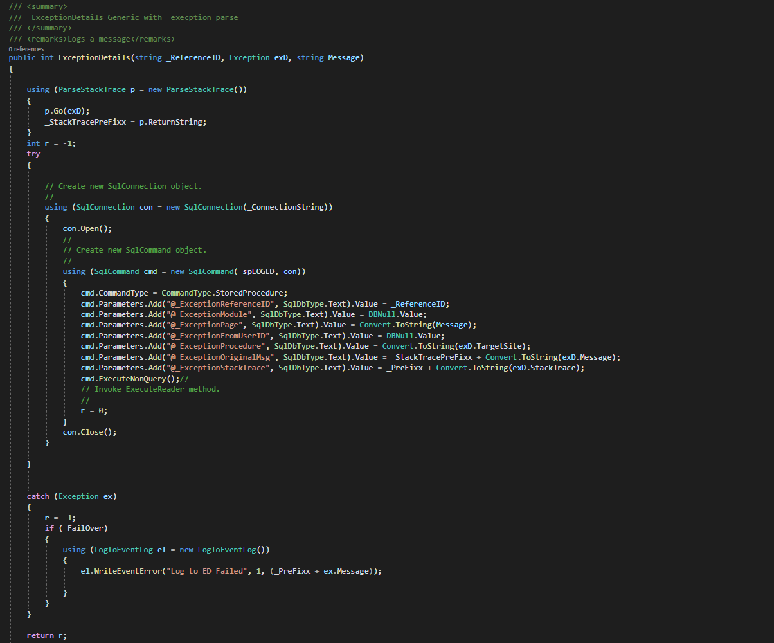 This writes errors to the ED log